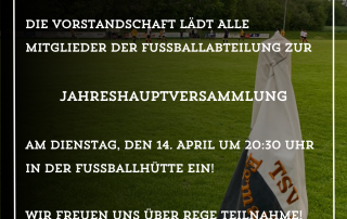 Die Vorstandschaft lädt alle Mitglieder der Fußballabteilung zur Jahreshauptversammlung am Dienstag, den 14. April 2026 um 20:30 Uhr in der Fußballhütte ein! Wir freuen uns über rege Teilnahme! Die Einladung findet ihr HIER. [...]